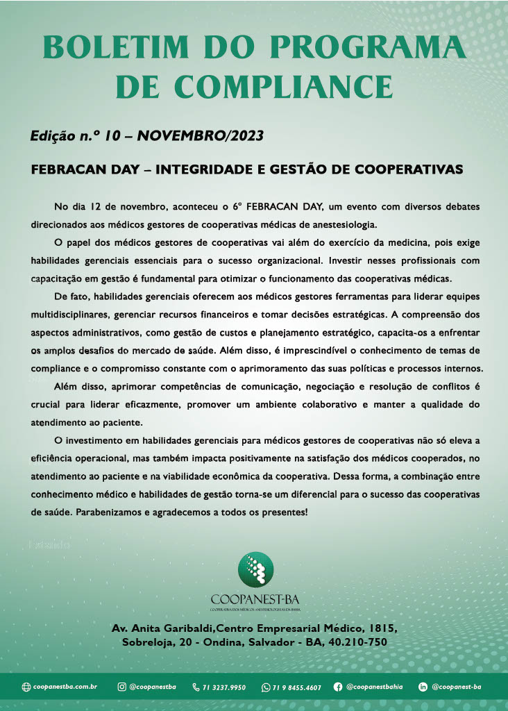 BOLETIM DO PROGRAMA DE COMPLIANCE Edição n.° 10 – NOVEMBRO/2023