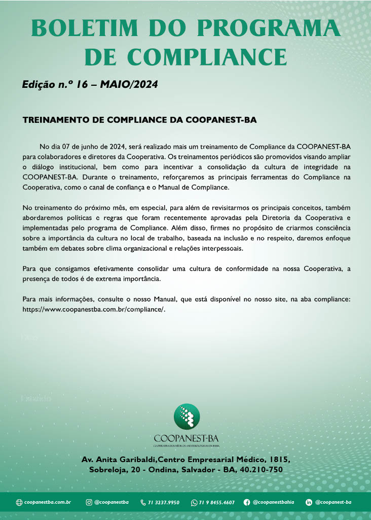 BOLETIM DO PROGRAMA DE COMPLIANCE Edição n. º 16 – MAIO/2024