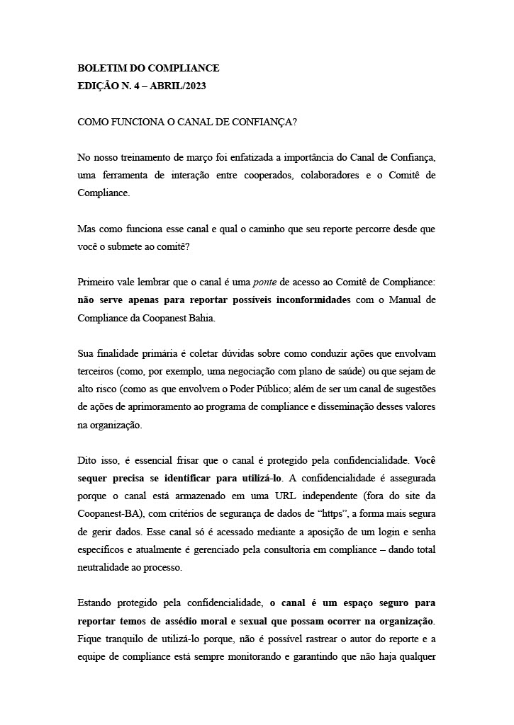 BOLETIM DO PROGRAMA DE COMPLIANCE Edição n.° 4 – ABRIL/2023