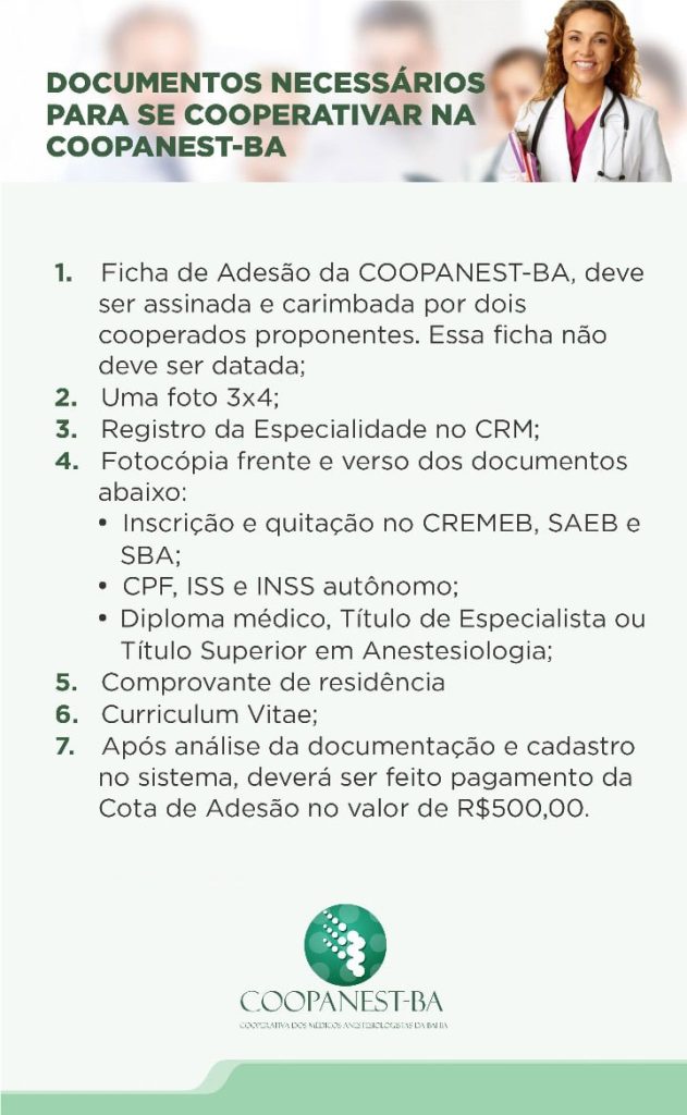Conhecer na íntegra o estatuto da COOPANEST-BA, participar das atividades promovidas pela cooperativa, votar e ser votado, tomar conhecimento, a qualquer tempo, dos atos administrativos e dos registros fiscais e contábeis.